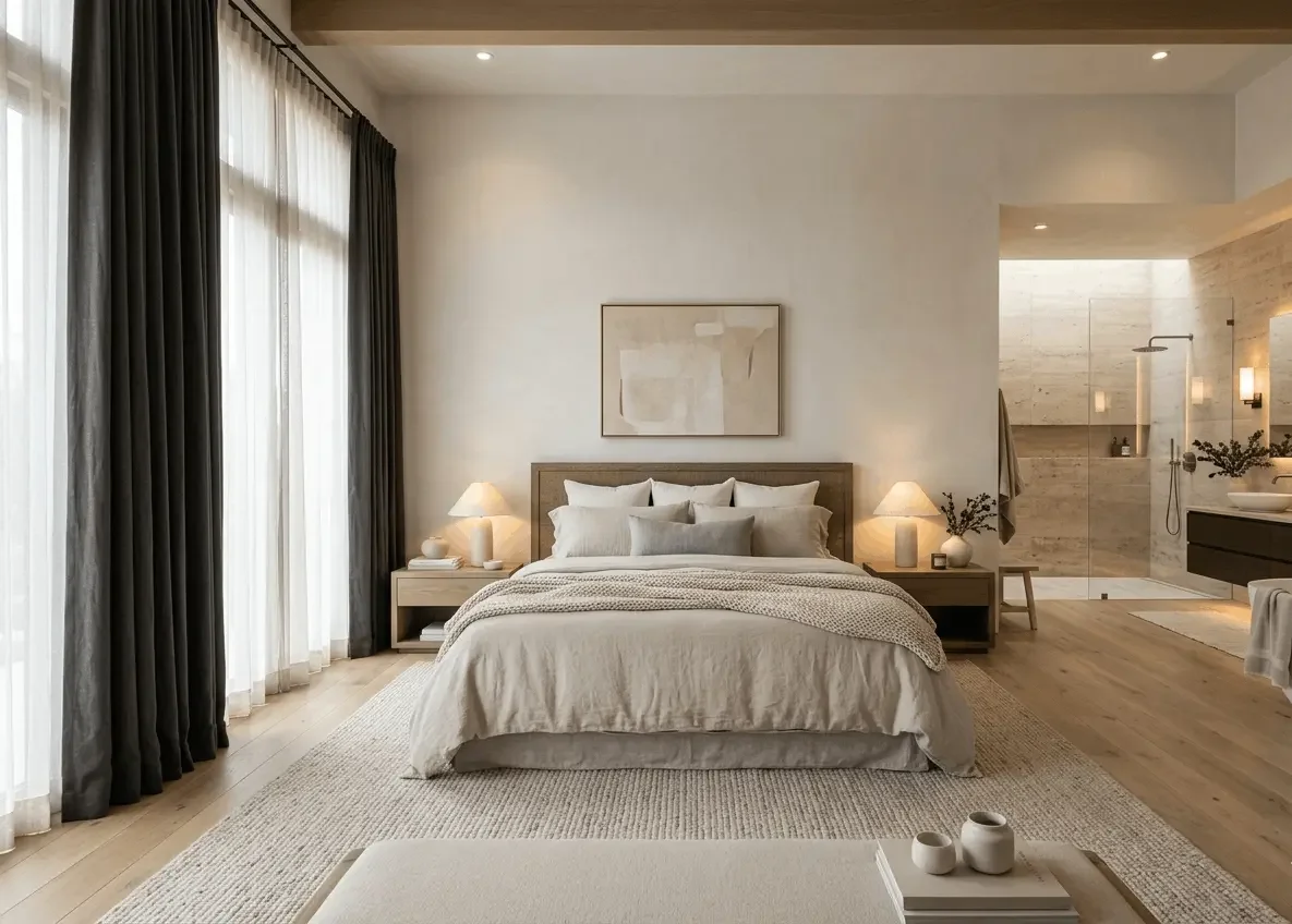 The bedroom and bathroom should be the most restorative spaces in your home yet they're often the most neglected. We design primary suites with rest as the guiding principle controlling light, selecting materials for comfort, positioning the bed for ease, and creating a bathroom that feels like ritual rather than routine.
